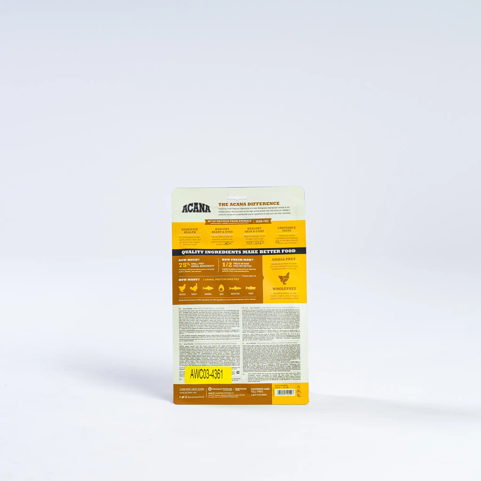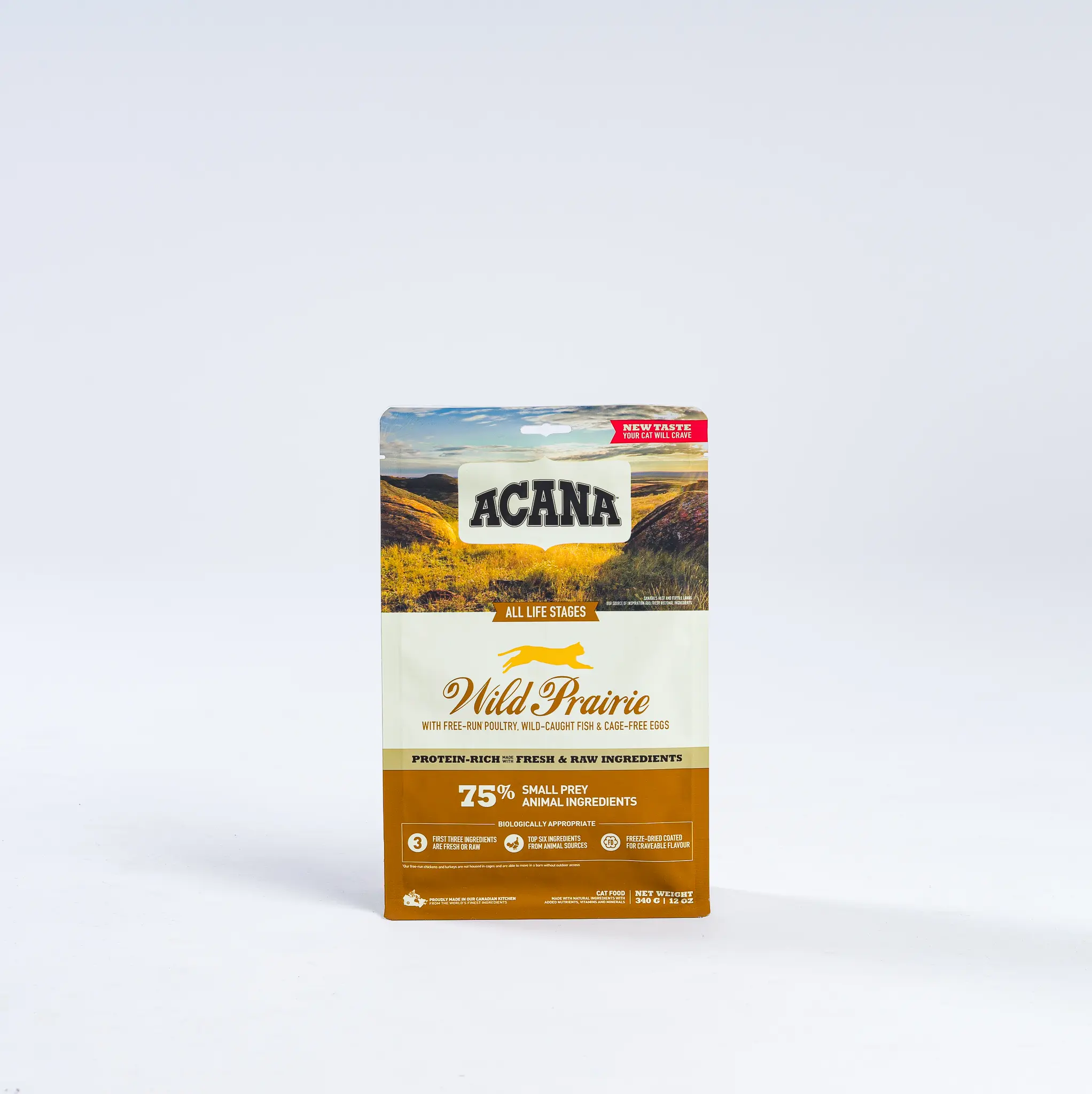 ACANA® Wild Prairie is packed full of protein and offers your cat quality animal ingredients from free-run chicken and turkey, freshwater fish, and cage-free eggs. Your cat’s digestive health will be supported through high-quality protein, fibre, and probiotics. Taurine, EPA, and DHA help to maintain heart and eye health, while the omega fatty acids will make your cat’s coat shiny.