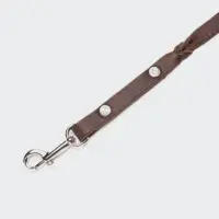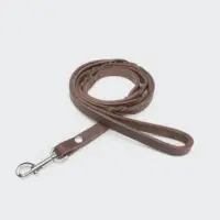 The dog leash Riverlino is especially developed for small dogs like pinchers, maltesers and chihuahuas. It is crafted from soft 1,2 cm wide leather and light-weight metal parts to be extra comfortable for small dogs. The oiled leather with pretty braided details develops a distinctive organic patina over time, and stands for soft yet sturdy qualities. To ensure safety despite the thinner shape, this dog leash is recommended only for dogs up to 6 kg body weight.