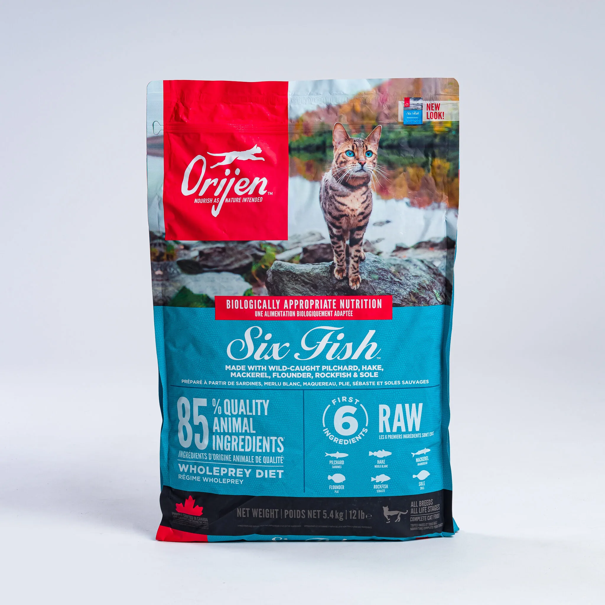 ORIJENĀ® Six Fish diet is made with fish from raw wild-caught pilchard, hake, mackerel, flounder, rockfish and sole. Packed with WholePrey animal ingredients like fish, organs and bone, this food is made with the most nutrient-dense, succulent parts of the prey to deliver the nutrition cats need. With 85% quality animal ingredients and a freeze-dried liver coating, this diet is beyond comparison.
