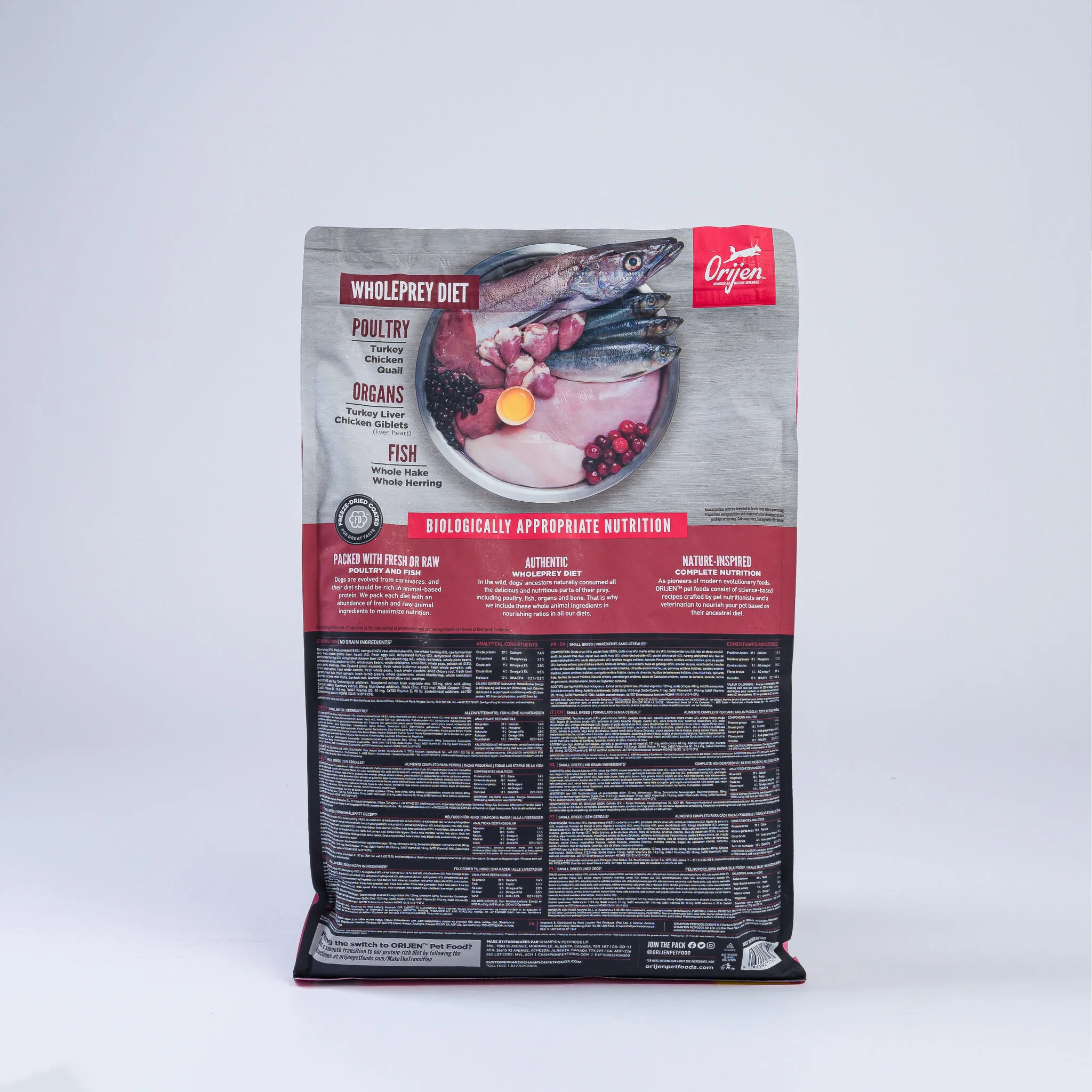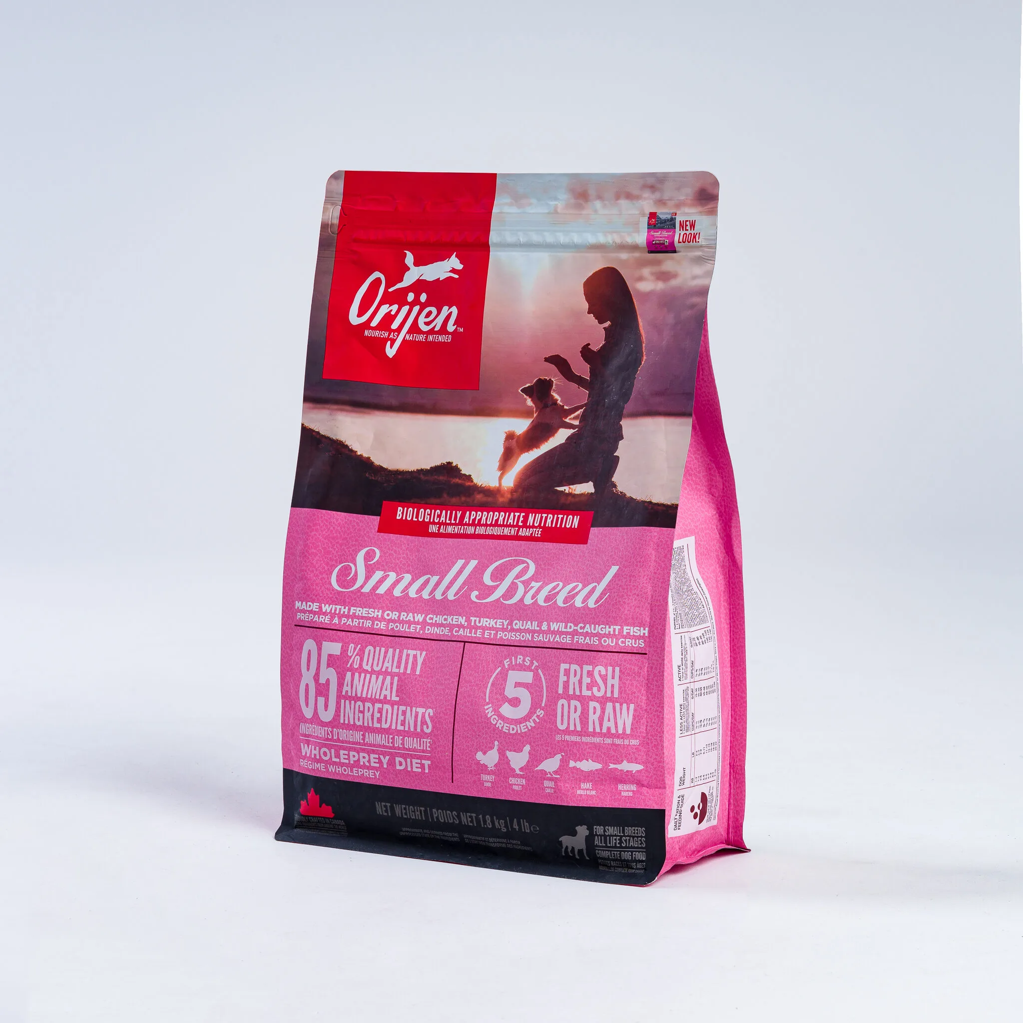 ORIJENĀ® Small Breed diet is made specifically for smaller dogs, with nourishing protein from free-run chicken and turkey, wild-caught fish and quail all packed into a unique kibble shape that is easier for them to eat. Packed with fresh or raw WholePrey animal ingredients, this food is made with the most nutrient-dense, succulent parts of the prey to deliver the nutrition dogs need. The result is a diet for your small canine companion that is beyond comparison.